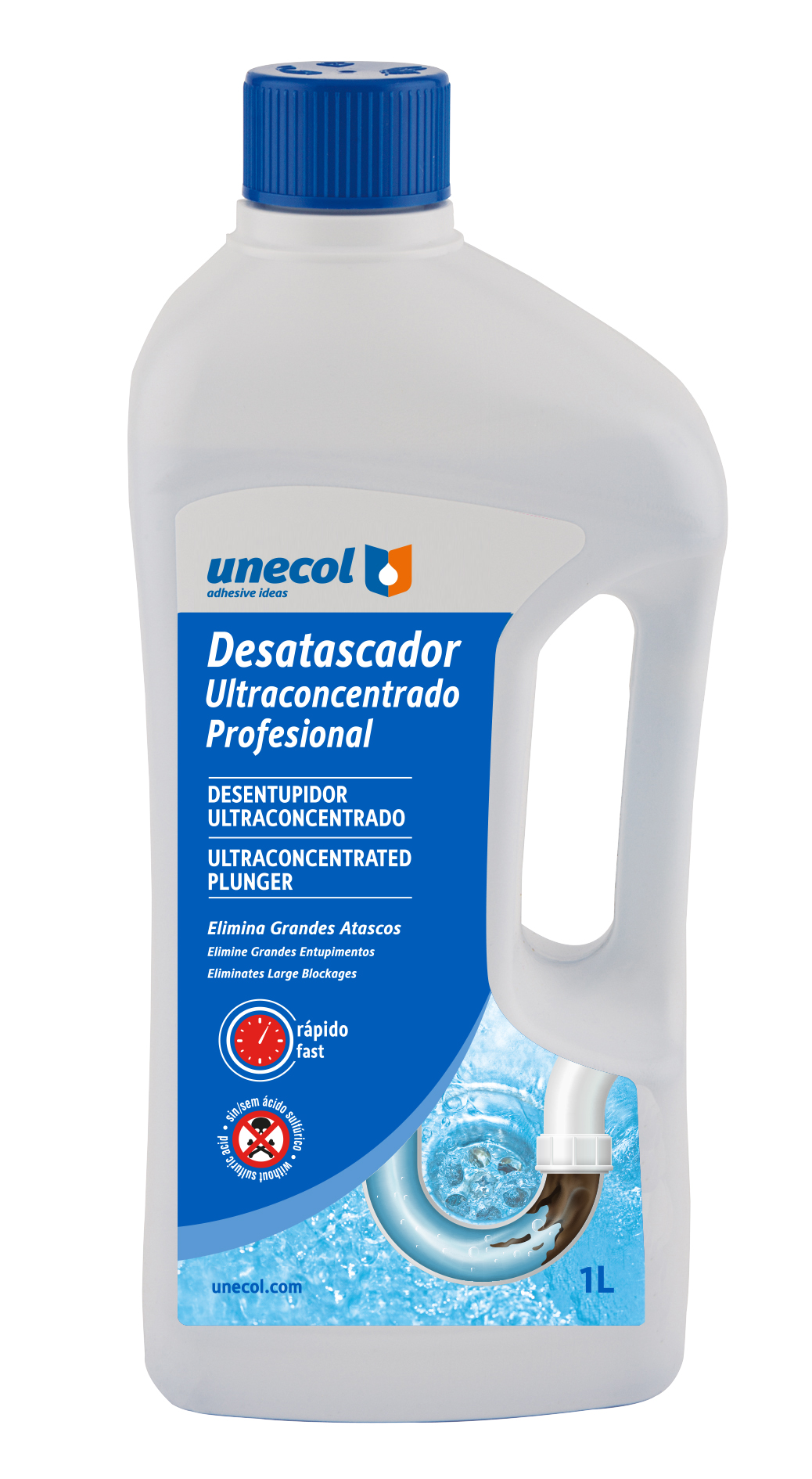 Déboucheur ultra-concentré à la soude pour dissoudre rapidement les matières organiques telles que les cheveux, les graisses, les aliments, etc. NE CONTIENT PAS D'ACIDE SULFURIQUE. PLUS RAPIDE QU'UN DÉBOUCHEUR EN GEL et avec un rendement supérieur. EFFICACE MÊME AVEC DE L'EAU STAGNANTE.